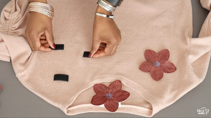 Collez la fleur sur la feutrine. Et pour finir, cousez la partie douce du Velcro sur votre haut.