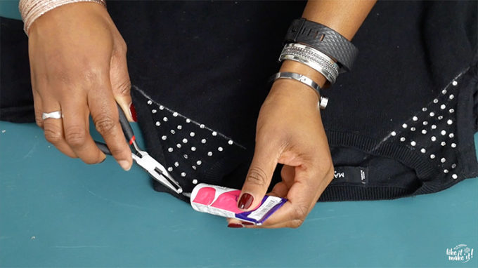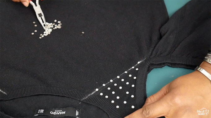 On continue avec la deuxième customisation, d’une simplicité enfantine. Idéal pour apporter une touche brillante à un haut rapidement et facilement.