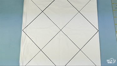 Premièrement, marquez le milieu de chaque côté au marqueur. Puis, tracez les deux diagonales.