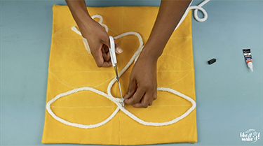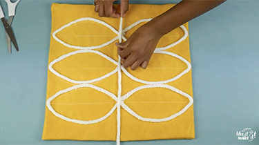 Premièrement, dessinez vos motifs à la craie sur le coussin.
