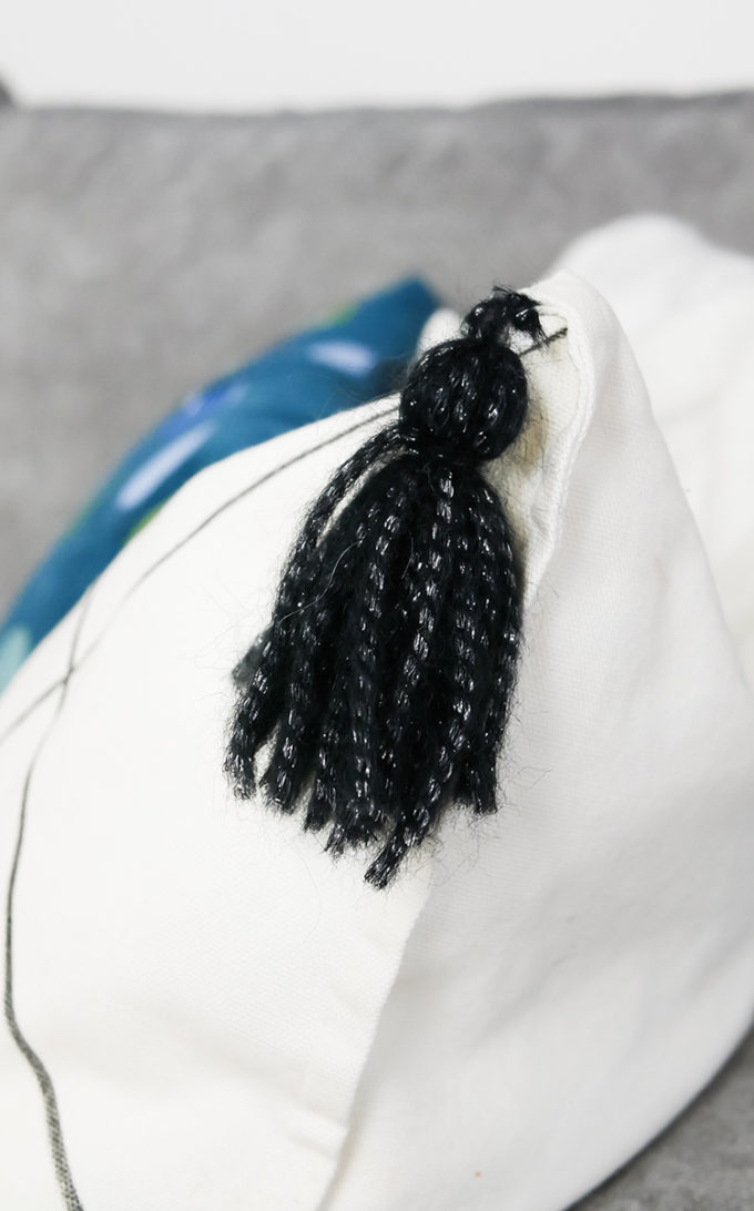 Pour terminer, ajoutez les pompons aux coins de la housse.