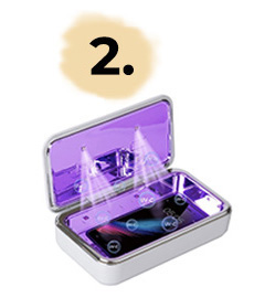 - Boîte Stérilisateur UV pour désinfecter, mais aussi recharger son portable. Les deux fonctions peuvent s’utiliser en simultanée. Et Covid ou pas, désinfecter son téléphone est recommandé ! Les petits boutons qui n’arrêtent pas d’apparaître sur le côté du visage, sont souvent dû à un téléphone sale ;).