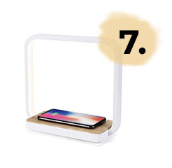 - On continue sur les objets autour du téléphone, avec cette lampe chargeur sans fil. Elle sert aussi bien de lampe de chevet, que de bureau. Sa fonction chargeur est adaptée aux modèles de téléphones compatibles avec la recharge sans fil. Donc à vérifier avant achat.