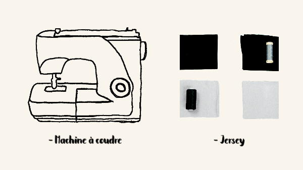 Pour ce dernier modèle, coupez deux bandes de jersey de 58 cm x 30 cm.