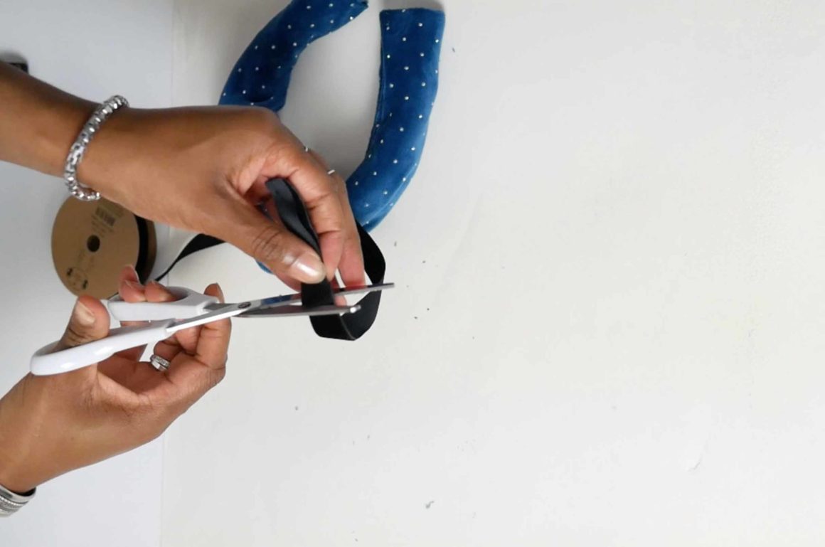 Maintenant, nous allons faire les finition pour que le serre-tête ait des extrémités propres. Pour cela, coupez un morceau de ruban, de la couleur de votre choix, d’une taille suffisante pour recouvrir complètement chaque extrémité du serre-tête.