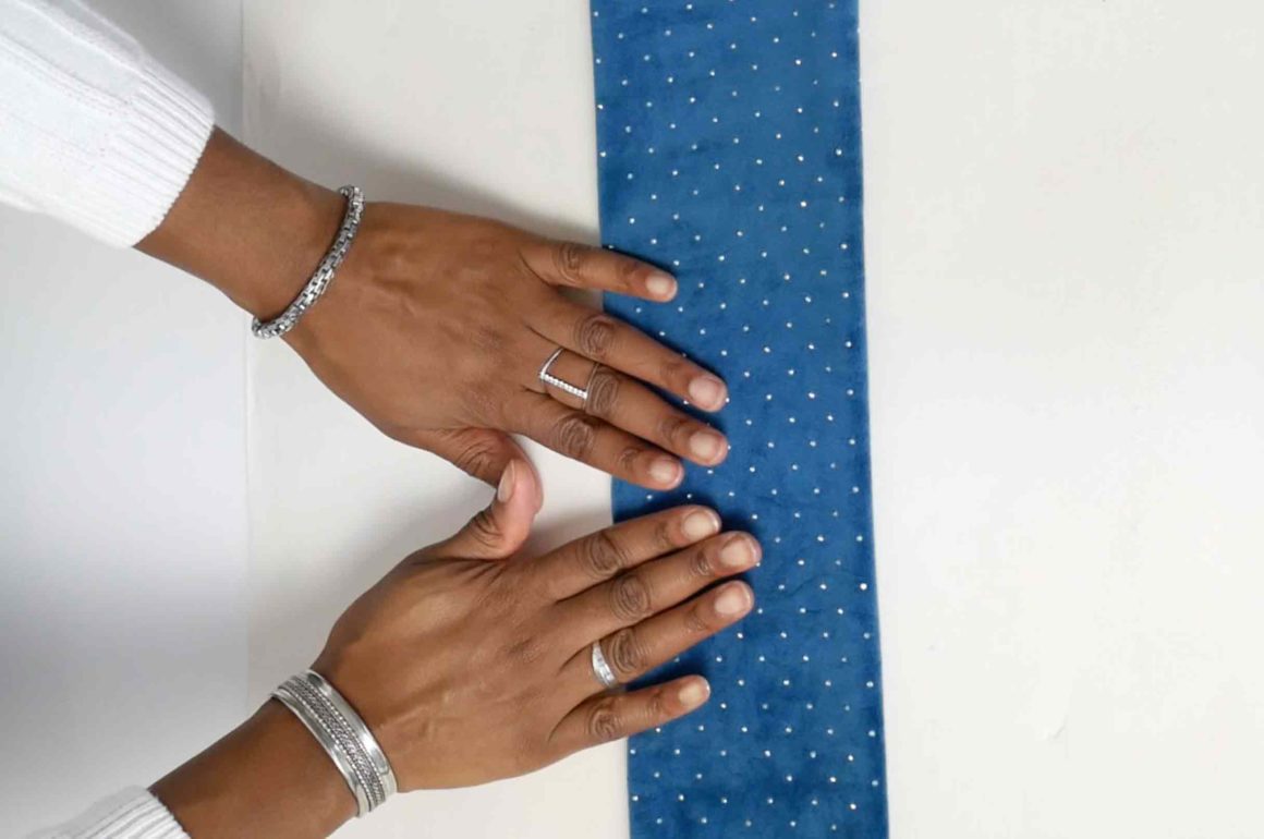 Pour ce DIY, j’ai utilisé du velours acheté chez Toto tissus, mais vous pouvez choisir un autre tissu de votre préférence. Cependant, je vous conseille de le prendre un peu épais pour avoir un noeud suffisamment gros.
